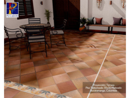 Nuestro Piso Texturizado en formato 30x30 cm. Se destaca por ser un producto de acabado artesanal, con una textura rugosa e irregular en la superficie de la pieza. Lo encuentras en nuestras cuatro gamas Arena, Almendro, matizado y tono más oscuro Tabaco. La naturalidad de este producto dará un valor agregado a tus espacios interiores y exteriores, creando proyectos únicos, con un estilo rústico y atemporal, propio de nuestros pisos de barro cocido.