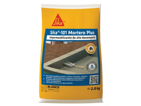 Sika®-101 Mortero Plus es un recubrimiento impermeable, elaborado con base en cemento. Nueva fórmula con polímeros modificados que le brindan mayor poder impermeabilizante, mayor manejabilidad y mayor adherencia. Apto para el uso en contacto con agua potable. Excelente adherencia sobre superficies de mampostería o concreto, Mayor poder impermeabilizante, Mayor tiempo de manejabilidad, Permite que la superficie respire, No es barrera de vapor. Resistente a la intemperie, De fácil aplicación y mantenimiento.