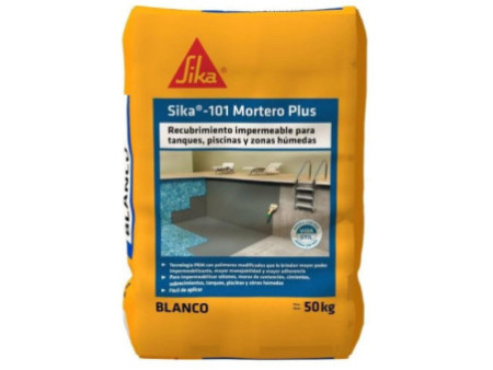Sika®-101 Mortero Plus es un recubrimiento impermeable, elaborado con base en cemento. Nueva fórmula con polímeros modificados que le brindan mayor poder impermeabilizante, mayor manejabilidad y mayor adherencia. Apto para el uso en contacto con agua potable. Excelente adherencia sobre superficies de mampostería o concreto, Mayor poder impermeabilizante, Mayor tiempo de manejabilidad, Permite que la superficie respire, No es barrera de vapor. Resistente a la intemperie, De fácil aplicación y mantenimiento.