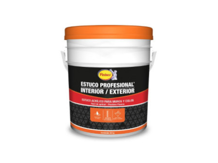 Recomendado en ambientes exteriores donde los niveles de exigencia sean altos; sobre superficies rugosas, pañete, mampostería sin pañete o superficies lisas como sistemas constructivos industrializados (pantallas de concreto) y paneles de fibrocemento. En zonas húmedas como baños y cocinas, muros en canchas de squash y áreas de piscinas. Ideal como preparador de superficies para acabados con pinturas acrílicas o epóxicas Pintuco, en áreas de asepsia y lavado permanente como quirófanos, laboratorios y plantas de alimentos. Información general Estuco Acrílico Profesional Exterior es una masilla plástica 100% acrílica, lista para aplicar, de alta blancura y de excelente adherencia sobre los diferentes materiales de construcción, especialmente diseñado para ambientes exteriores, con máxima resistencia al agua y la intemperie. Maximiza el rendimiento y garantiza la adherencia de las pinturas decorativas. Proporciona acabados lisos, tersos y de larga duración.