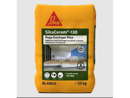 Adhesivo para enchapes en pisos, muros interiores y en pisos exteriores. SikaCeram®-130 Pega Enchape Plus es un adhesivo elaborado con base en cemento de color gris o blanco, que cumple la norma NTC 6050 clasificación C1, para uso interior y exterior.