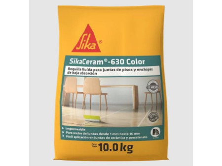 Boquilla impermeable y antihongos para tratamiento de juntas de pisos y enchapes de todo tipo, especialmente diseñado para enchapes de baja absorción. Recomendado para juntas de 1-15mm, Boquilla de alto desempeño impermeable y antihongos, para uso en juntas entre 1mm y 15 mm. El SikaCeram®-630 Color es un mortero con granulometría y aditivos especiales que permiten mejorar la relación agua cemento y obtener una mejor consistencia del producto, para un mejor desempeño final. El SikaCeram®-630 Color tienen aditivos fungicidas reduciendo la propagación de hongos y moho, disminuyendo el deterioro estético de la junta a mediano y largo plazo. Impermeable, Antihongos y Moho, Resiste ancho de junta hasta 15mm.