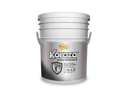 Recomendada para ambientes exteriores, para decorar y proteger fachadas y patios; revocados y estucados, en bloque a la vista, ladrillo sin esmaltar, tejas y láminas de fibro-cemento. *Para la elección adecuada del color te recomendamos utilizar los colores marcados en el abanico con el simbolo del sol ? los cuales garantizan la retención del color por 5 años siguiendo las recomendaciones de aplicación. Descripción General Koraza 5 es una pintura premium experta en exteriores, con polímeros 100% acrílicos que le dan alta durabilidad y máxima resistencia a la suciedad y a los hongos. Ideal para superficies expuestas a la intemperie ya que forma una barrera plástica resistente a la lluvia y tiene bloqueador solar que la protege de los rayos del sol, a la vez que es amigable con el medio ambiente por su bajo contenido de VOC.