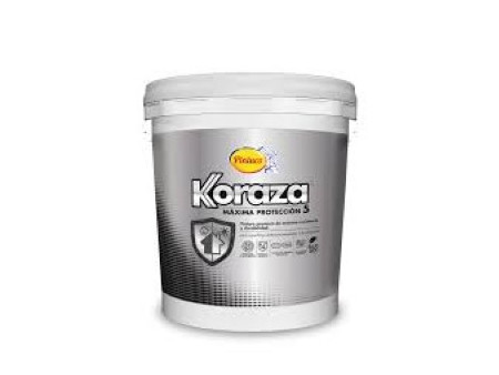 Recomendada para ambientes exteriores, para decorar y proteger fachadas y patios; revocados y estucados, en bloque a la vista, ladrillo sin esmaltar, tejas y láminas de fibro-cemento. *Para la elección adecuada del color te recomendamos utilizar los colores marcados en el abanico con el simbolo del sol ? los cuales garantizan la retención del color por 5 años siguiendo las recomendaciones de aplicación. Descripción General Koraza 5 es una pintura premium experta en exteriores, con polímeros 100% acrílicos que le dan alta durabilidad y máxima resistencia a la suciedad y a los hongos. Ideal para superficies expuestas a la intemperie ya que forma una barrera plástica resistente a la lluvia y tiene bloqueador solar que la protege de los rayos del sol, a la vez que es amigable con el medio ambiente por su bajo contenido de VOC.