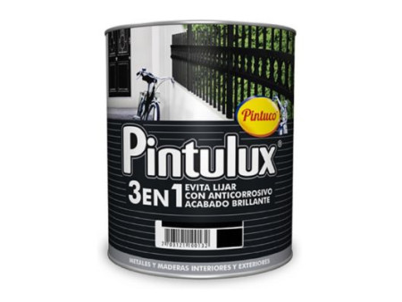 Pintulux 3 en 1 es un esmalte sintético brillante, especialmente diseñado para hacer más fácil el proceso de pintar porque prepara, protege e interviene en la decoración de superficies en un solo paso. Por su revolucionaria formulación evita lijar, trae el anticorrosivo y da un acabado brillante. No contiene plomo ni cromo. Recomendado para proteger y decorar superficies y/o artículos de metal y madera en ambientes interiores y exteriores. Puede ser aplicado sobre superficies metálicas corroídas, ya que por su formulación funciona como inhibidor de óxido, brindando una excelente protección y simplificando el proceso de aplicación.