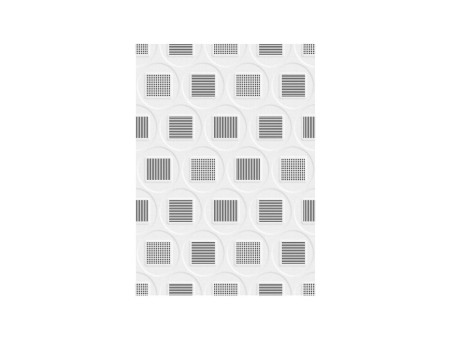 La pared Corona tipo moderna estructurada (superficie con relieve) y acabado brillante MAYAL es de color negro y en formato 25x35, vemos en esta pared la fusión en perfecta simetría de cuadros y círculos, dispuestos armónicamente a lo largo de la pieza, dejándonos ver en su interior sutiles líneas en microestructura que realzan los acentos geométricos en color negro que lo componen. Este producto tiene una única cara y cuenta además con la tecnología Brillox®.